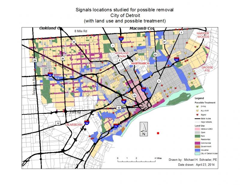Schrader, M.H. (2014) Spatial analysis of signalized intersections sampled for possible removal in the City of Detroit. Total Transportation System Solutions.